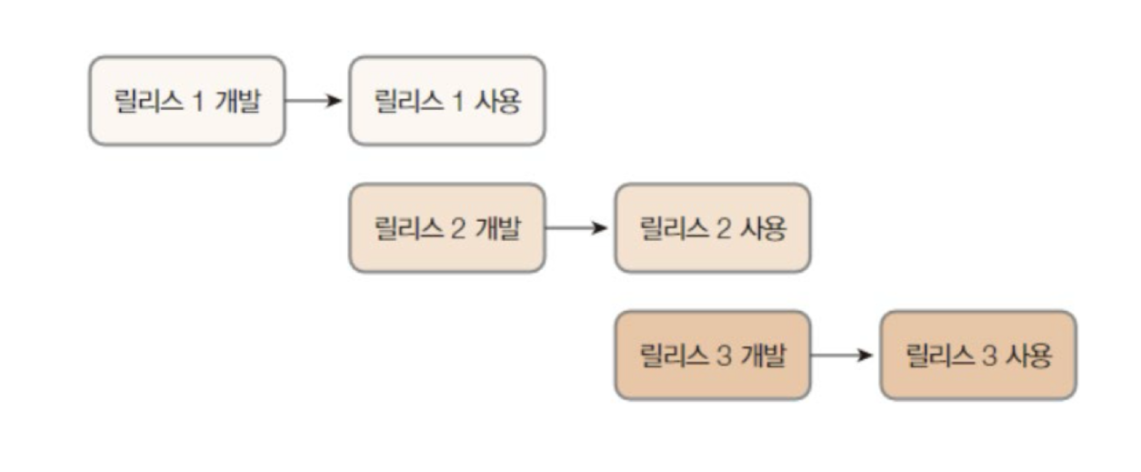 - 개발자가 먼저 릴리즈 1(완전히 만들어진 것 아님)을 개발하여 사용자가 사용