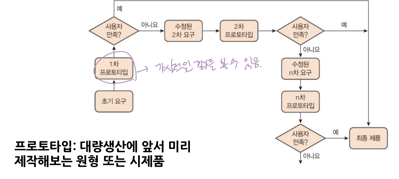 - 변경된 요구사항을 반영하여 지속적인 프로토타입 개선 (프로토타입)